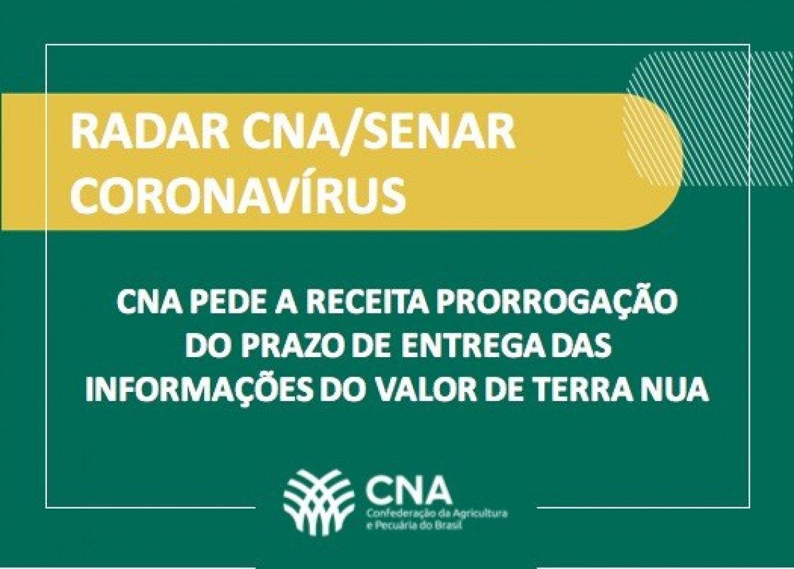 A Confederação da Agricultura e Pecuária do Brasil (CNA) solicitou a Receita Federal do Brasil a prorrogação do prazo para a prestação das informações sobre o Valor de Terra Nua (VTN).