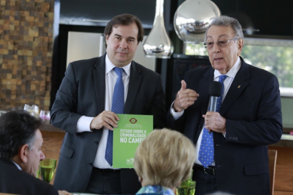 Bras?lia (10/05/2018) ? O presidente da Confedera??o da Agricultura e Pecu?ria do Brasil (CNA), Jo?o Martins, entregou na quarta (9) ao ministro Raul Jungmann (Seguran?a P?blica) e ao presidente da C?mara dos Deputados, Rodrigo Maia (DEM-RJ), o ?Estudo sobre a Criminalidade no Campo?, documento que aponta o grave quadro de inseguran?a no meio rural e apresenta propostas para o combate e o efetivo enfrentamento da viol?ncia que atinge produtores, familiares e trabalhadores rurais.