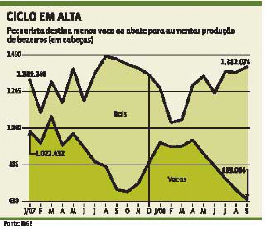 Os dados mais atualizados sobre abate de vacas no Pa?s ? de setembro de 2008 do Instituto Brasileiro de Geografia e Estat?stica (IBGE). Nos nove meses de 2008 foram abatidos 3% menos boi gordo do que em igual per?odo do ano passado, enquanto que o descarte de vacas foi 9% menor, segundo o instituto. "Se formos considerar apenas terceiro trimestre de 2008, na compara??o com o mesmo per?odo de 2007, o abate de vacas caiu 12%", diz.