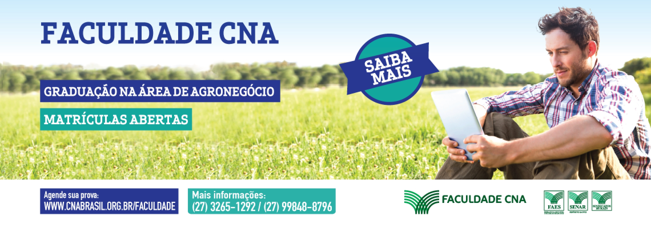 A Faculdade CNA ? a primeira institui??o de ensino voltada exclusivamente para o agroneg?cio e est? com inscri??es abertas. S?o cinco cursos de tecnologia a dist?ncia para formar profissionais em Gest?o do Agroneg?cio, Processos Gerenciais, Gest?o Ambiental, Log?stica e Gest?o de Recursos Humanos.