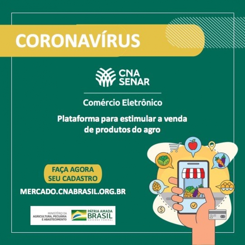 Desenvolvida pelo Sistema CNA/Senar para aproximar produtores rurais e consumidores durante a pandemia do coronavírus, o Mercado CNA oferece produtos agropecuários tanto para o consumidor final quanto para cooperativas e redes de supermercados.