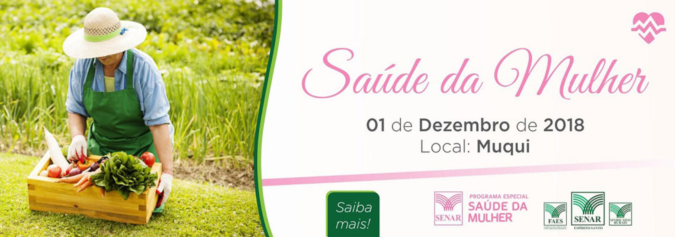 O Servi?o Nacional de Aprendizagem Rural do Esp?rito Santo (Senar-ES) promove, no pr?ximo dia 01, o Programa Sa?de da Mulher, no Distrito de S?o Gabriel, em Muqui. As participantes v?o receber atendimento m?dico, fazer exame preventivo, testes r?pidos de HIV (v?rus da imunodefici?ncia humana) e VDRL (teste para identifica??o de s?filis), aferir press?o e glicose, al?m de receberem orienta??es sobre sa?de bucal. O evento ? gratuito e n?o ? necess?rio se inscrever para participar.