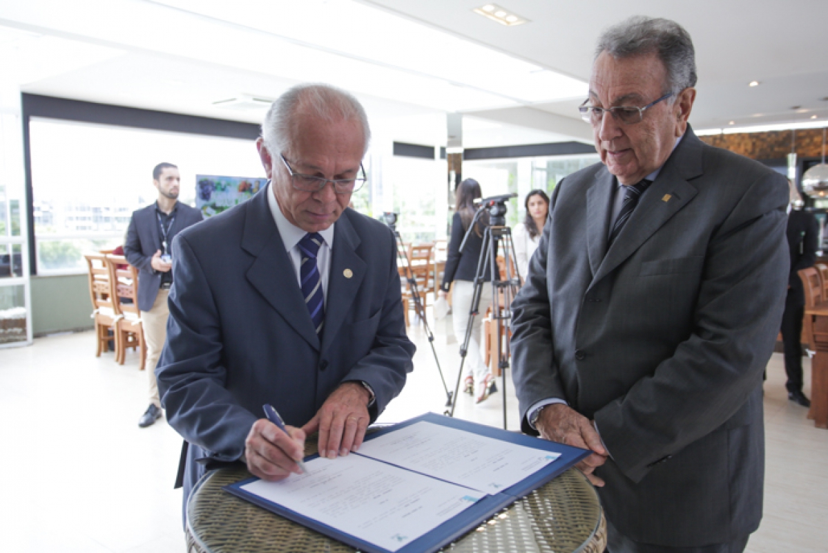 O presidente da CNA e do Conselho Deliberativo do Senar, Jo?o Martins, e o presidente do TST e do Conselho Superior da Justi?a do Trabalho (CSJT), Jo?o Batista Brito, assinaram nesta ter?a (17), em Bras?lia, o Protocolo de Inten??es do Programa de Aprendizagem Rural para incentivar a forma??o profissional de jovens e adolescentes no campo.