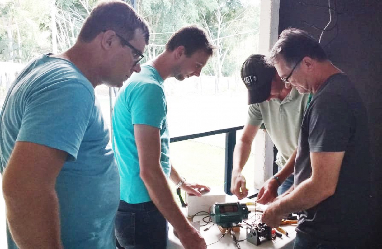 Nesta semana, sete produtores rurais de Itagua?u est?o aprendendo sobre comandos el?tricos por meio do treinamento do Senar-ES. O curso aborda temas como chave compensadora autom?tica, motores el?tricos em pain?is de comando, liga??o de motores e partida manual de motores el?tricos, revers?o autom?tica, entre outros. O presidente do Sindicato Rural de Itagua?u, Ant?nio Jos? Baratela, destaca que os cursos de profissionaliza??o fortalecem a comunidade. ??s vezes o produtor est? a quil?metros de dist?ncia de um eletricista e precisa resolver um pequeno problema. Se ele participou da qualifica??o, ele mesmo vai conseguir resolver e dar continuidade ao seu trabalho?.