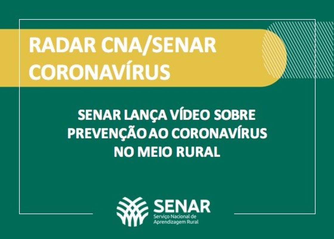 O Serviço Nacional de Aprendizagem Rural (Senar) e o Instituto Lado a Lado pela Vida lançaram na terça (28) um vídeo para explicar as principais dúvidas sobre a prevenção e o combate ao novo coronavírus no meio rural.